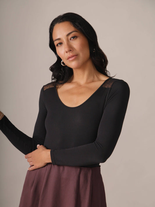 Longsleeve Bodysuit with Sheer Back in Black