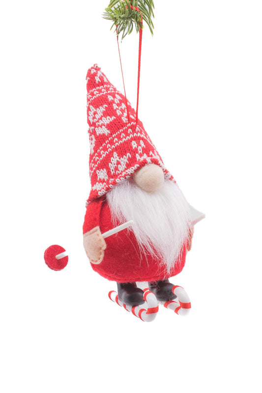 Ornament - Red Standing Skiing Gnome