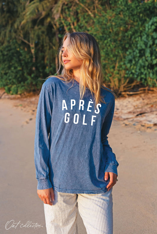 T-shirt à manches longues délavé minéral APRES GOLF avec motif : CRÈME