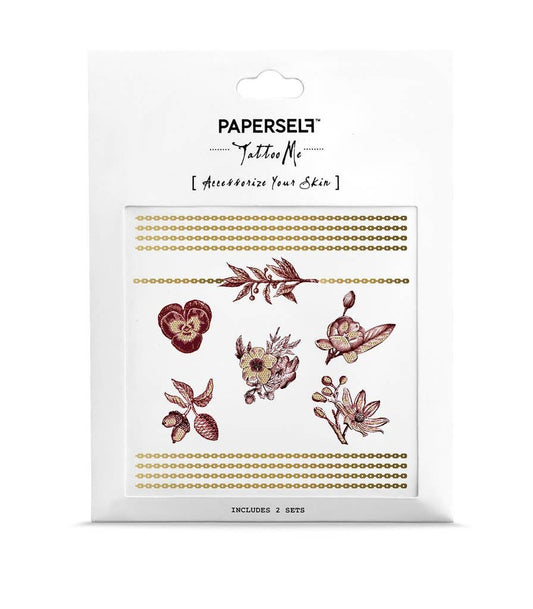 Burgundy Garden Chain Bracelet Temporary Tattoos Stickers