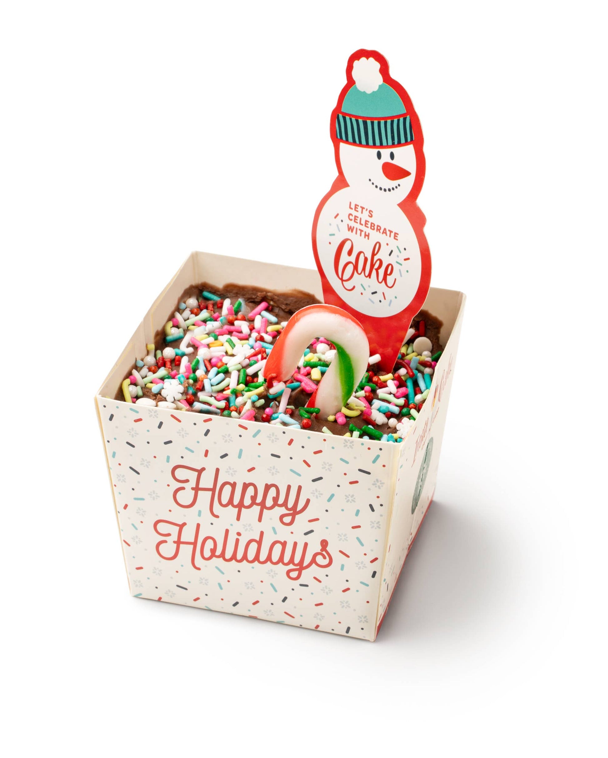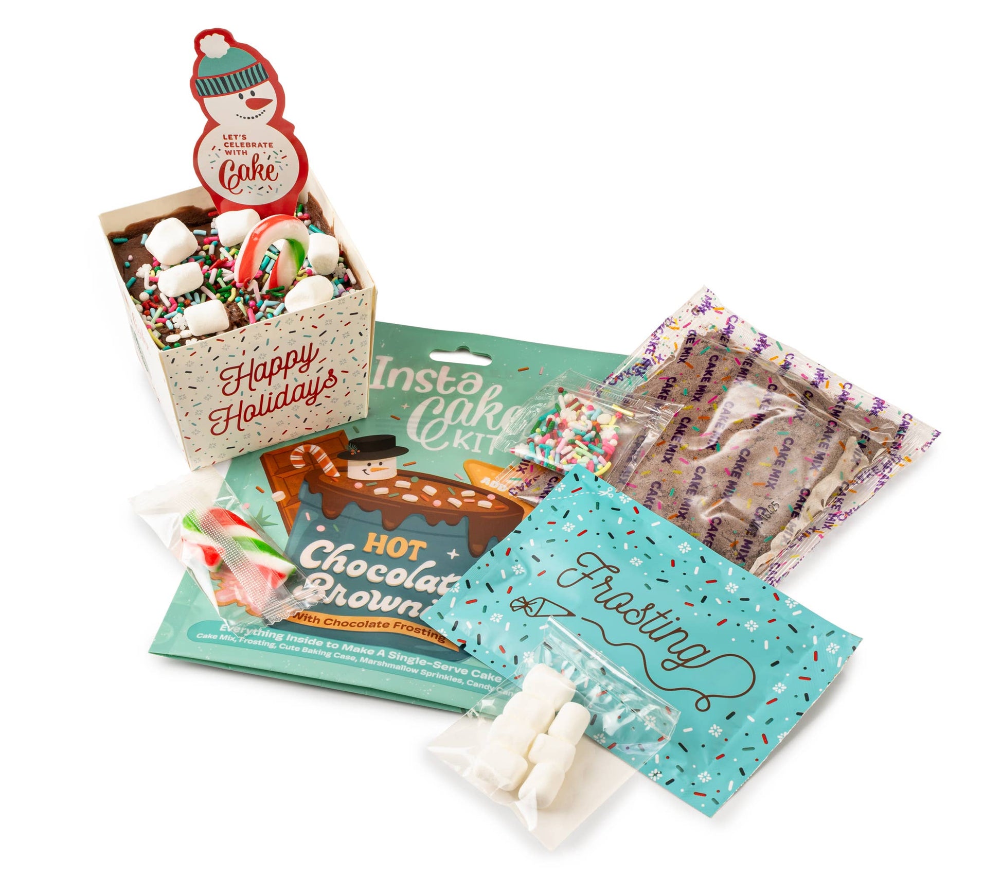 Our Holiday Cake kits make the perfect gift for anyone over the age of 3+. As everything is included, even the water measure! Meaning, no need to know the difference between a teaspoon & a table spoon. No dishes either, as EVERYTHING is included! Majority of which can be tossed into the recycling bin when finished for easy clean up.