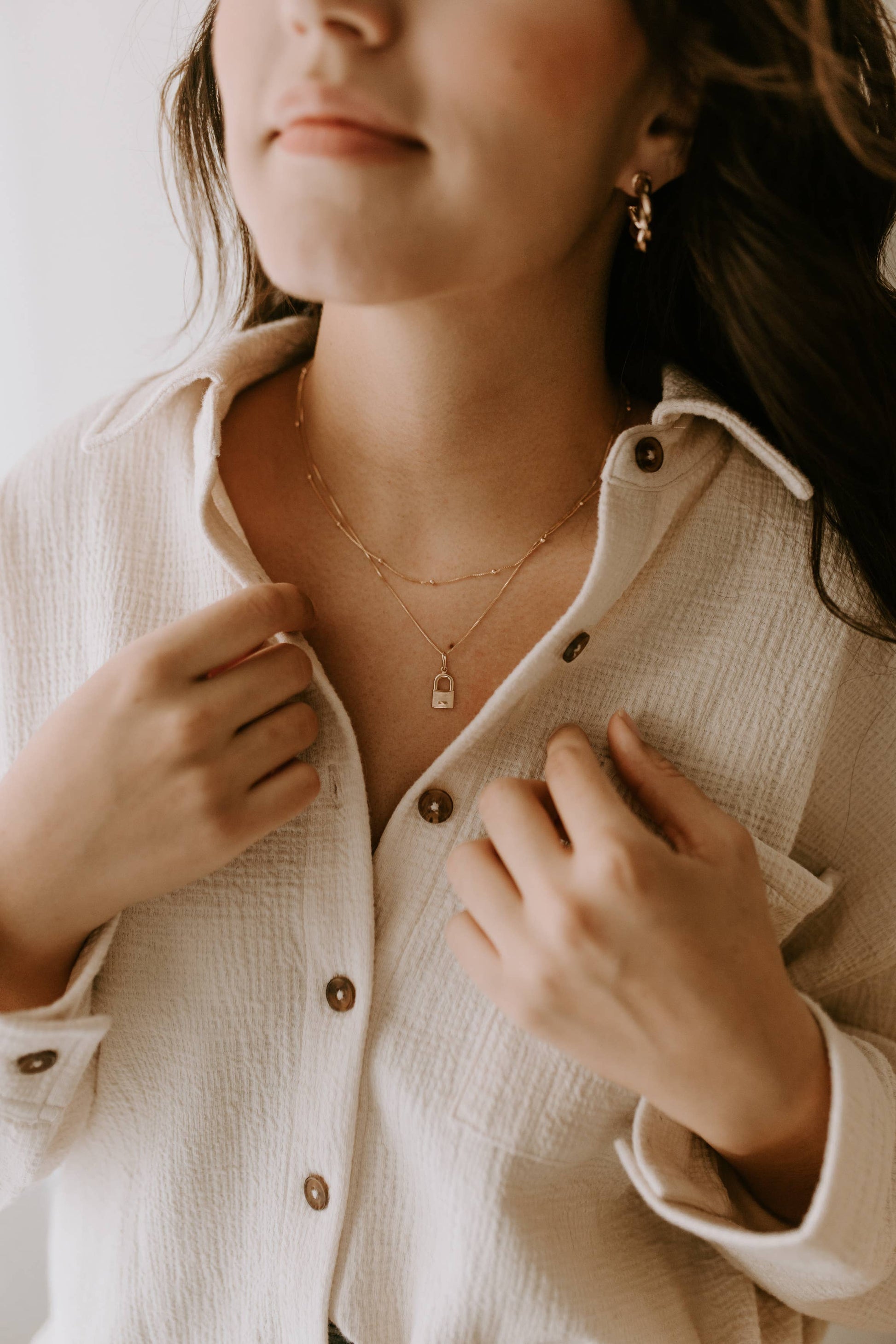 Gold-filled components contain 100+ times more real gold than gold-plated components and are both durable and tarnish resistant. It is more affordable and accessible than solid gold but higher quality than gold plated.