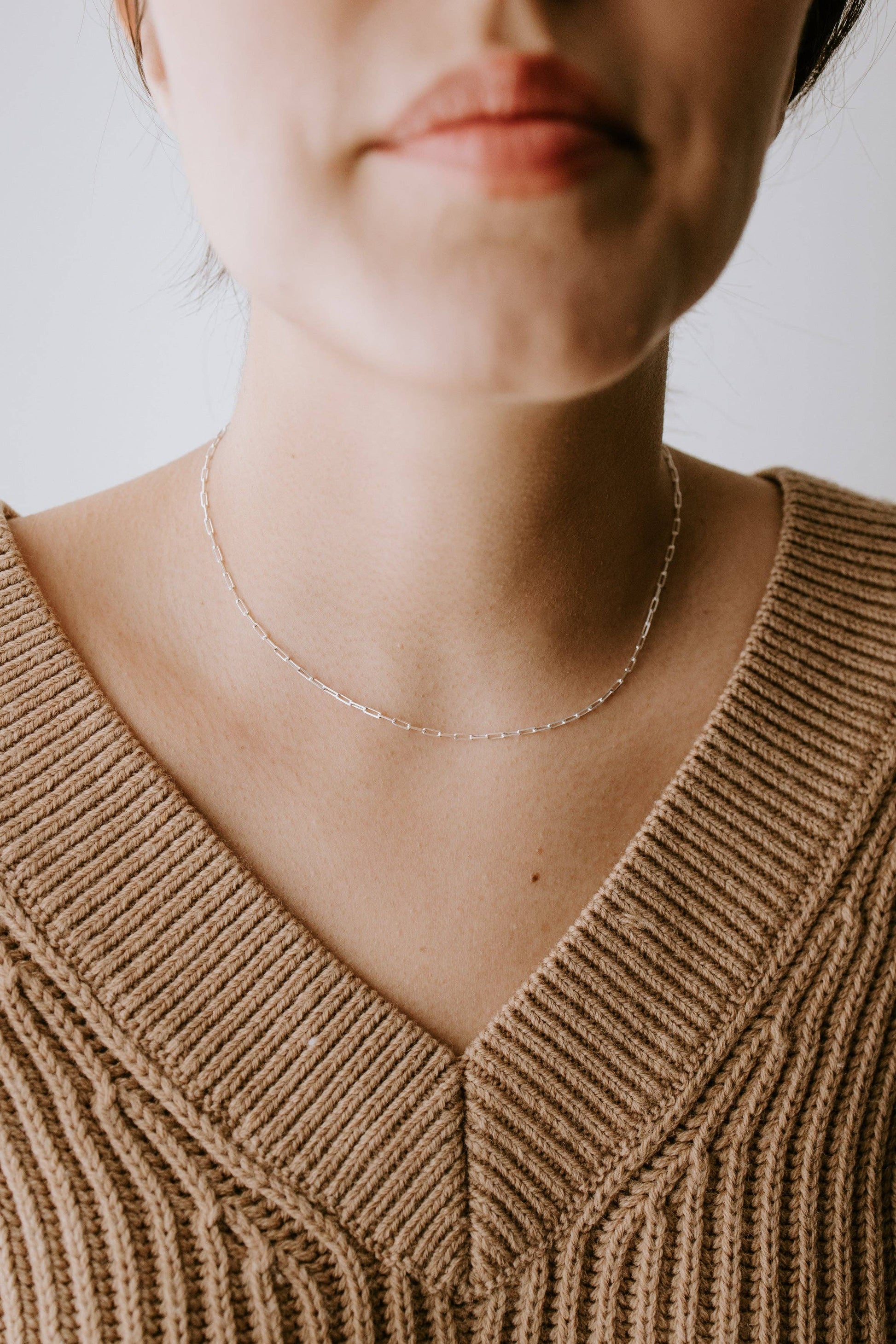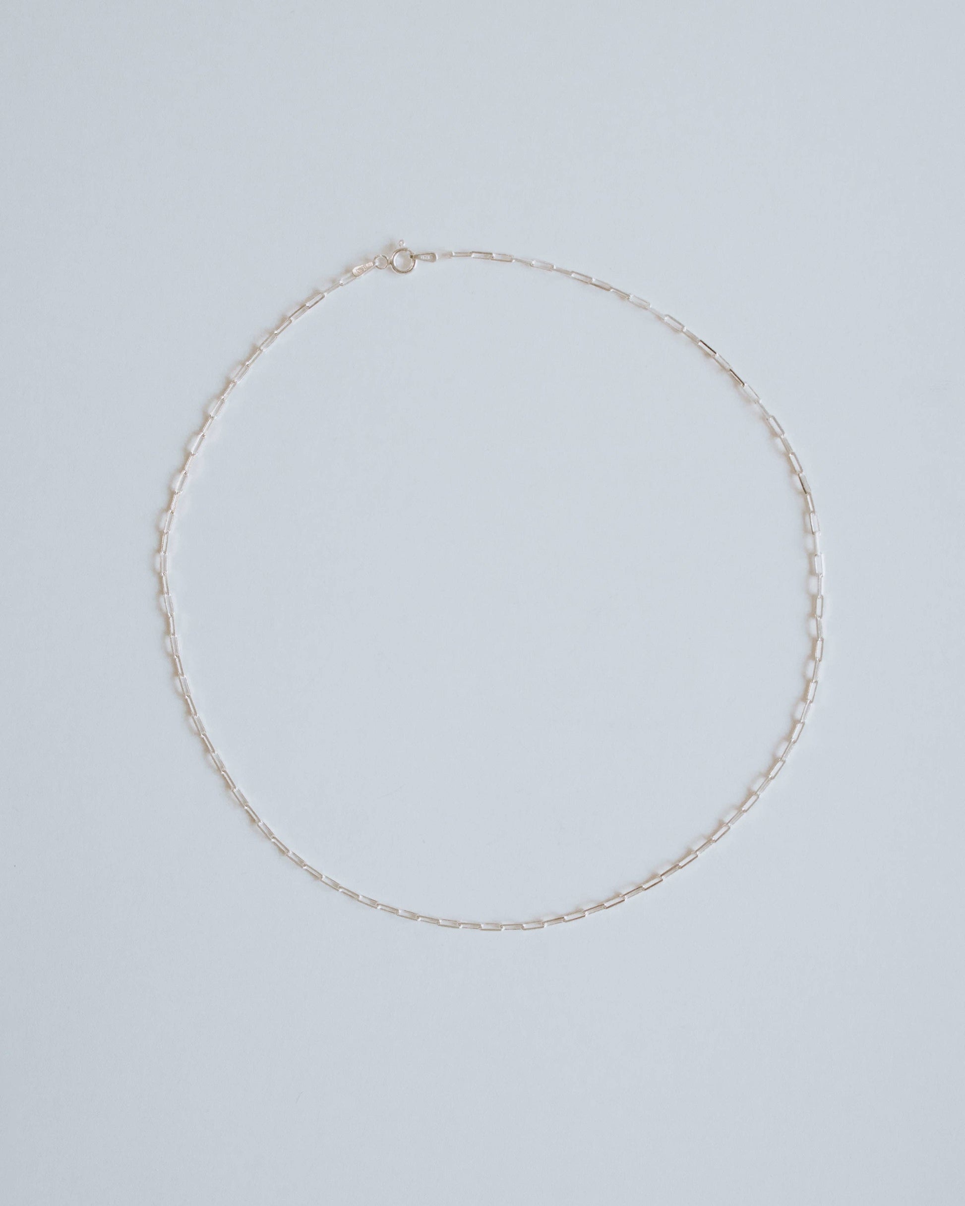 Crafted with high-quality sterling silver, this delicate paperclip chain adds a touch of elegance to any outfit. Its timeless design is perfect for everyday wear, making it a versatile addition to your jewelry collection.