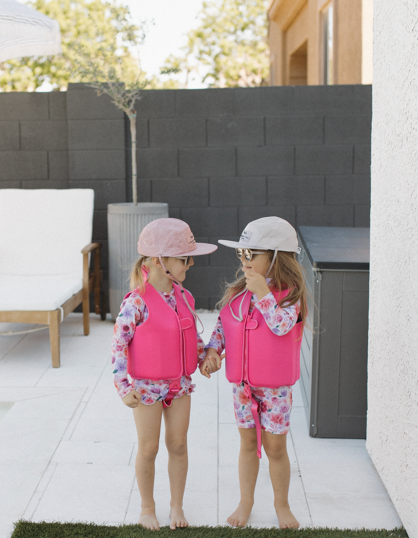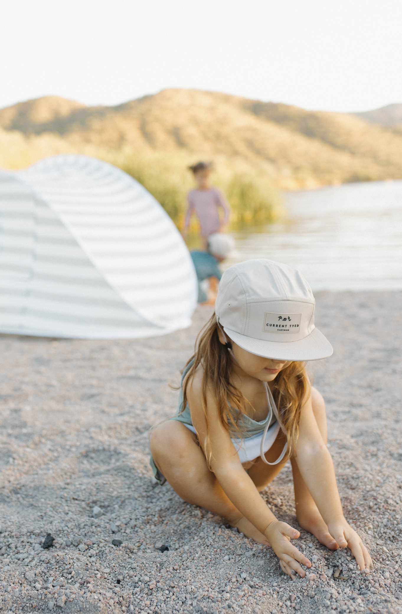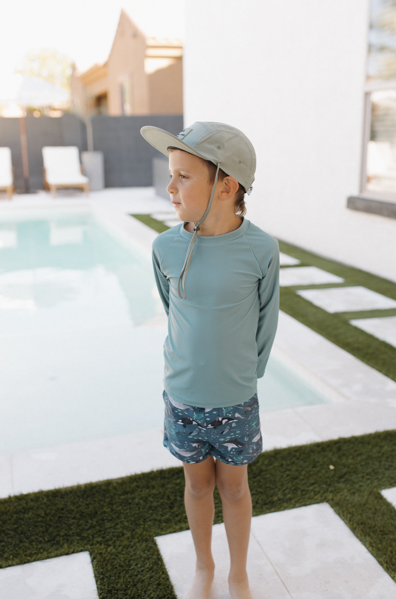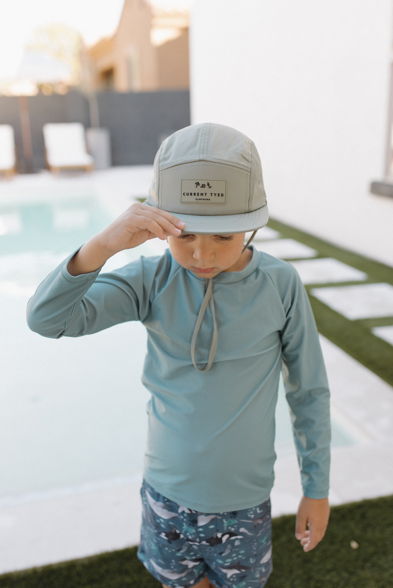 Kids Sun Hat 5 Panel Waterproof Snapback: Beige (Tonal Patch)