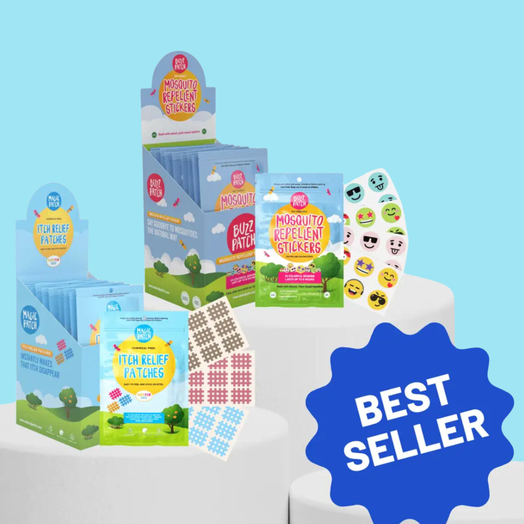 BuzzPatch & MagicPatch Stickers are the ultimate natural solution for mosquito protection and bug bite relief. Packed with 100% natural ingredients, this bestselling set is perfect for families, kids, and outdoor enthusiasts. 🌱 BuzzPatch: Natural mosquito repellent stickers • Deet-free, non-toxic, and family-friendly • Provides long-lasting protection for up to 12 hours • MagicPatch: Natural bug bite relief stickers • Fast-acting itch relief for mosquito, spider, and other bug bites • Works in under 60 seconds •