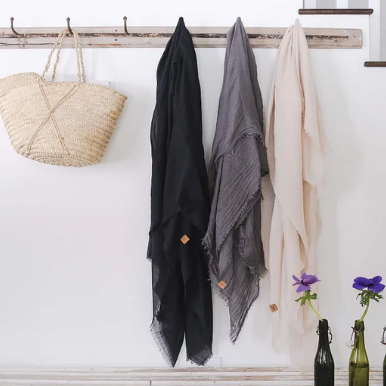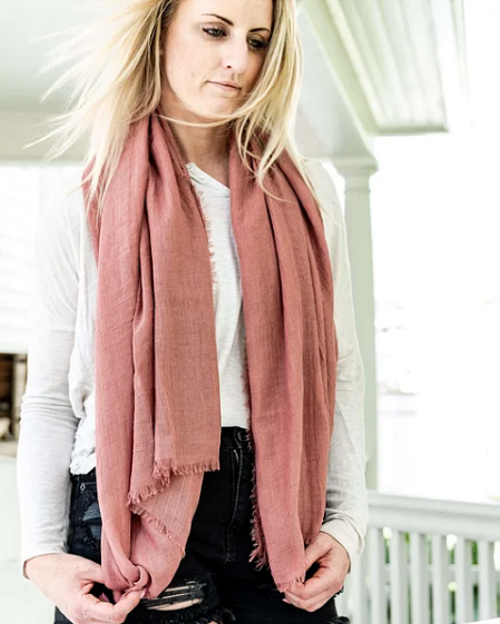 Ultra-soft lightweight linen scarf perfect for any season. Fringed hem, neutral colors, 74" x 56". Available in 8 colors from Vintage Society.