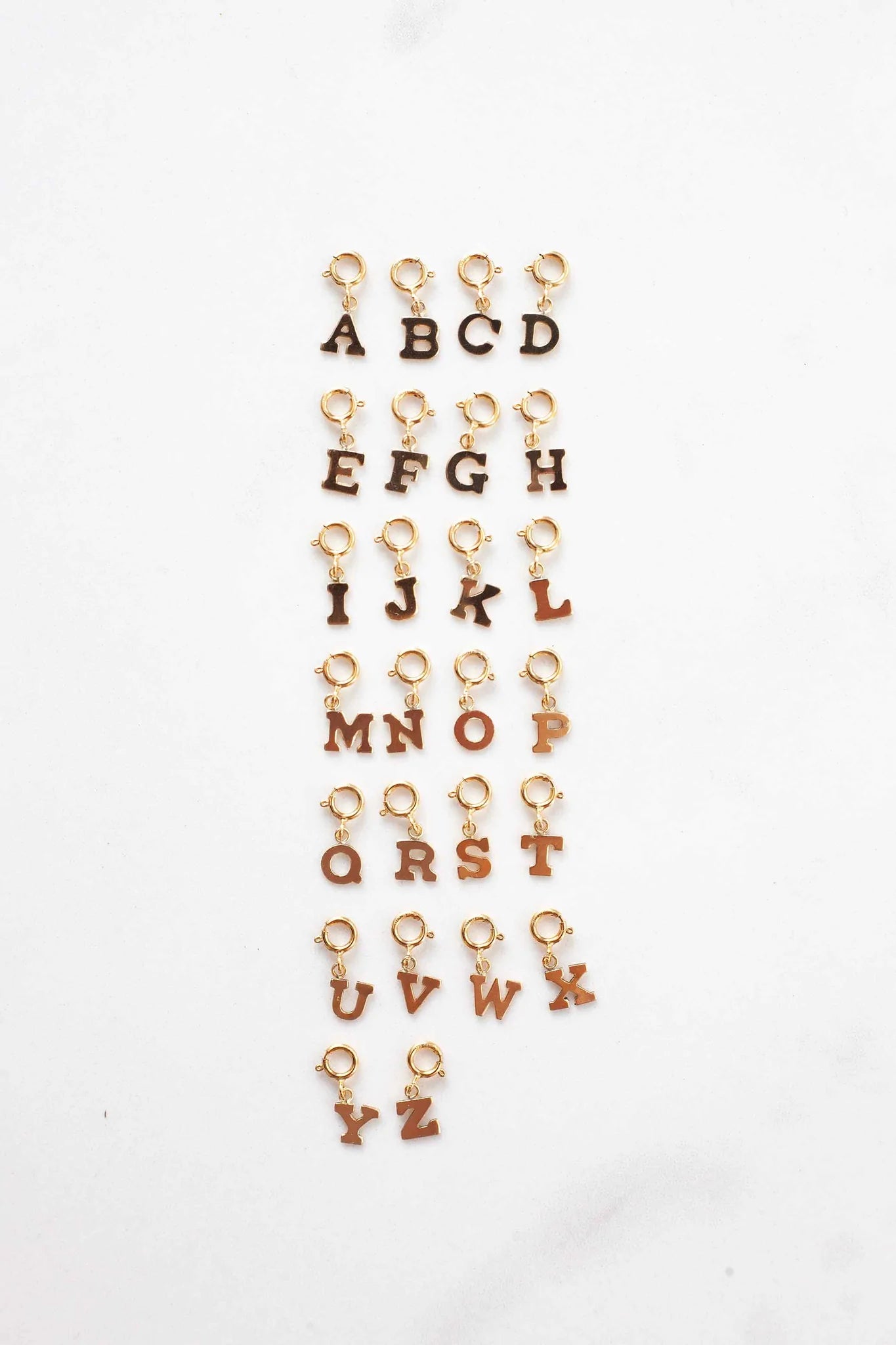 14kt gold-filled alphabet charms on spring clasps. Spell out a name, initial, or favourite word!