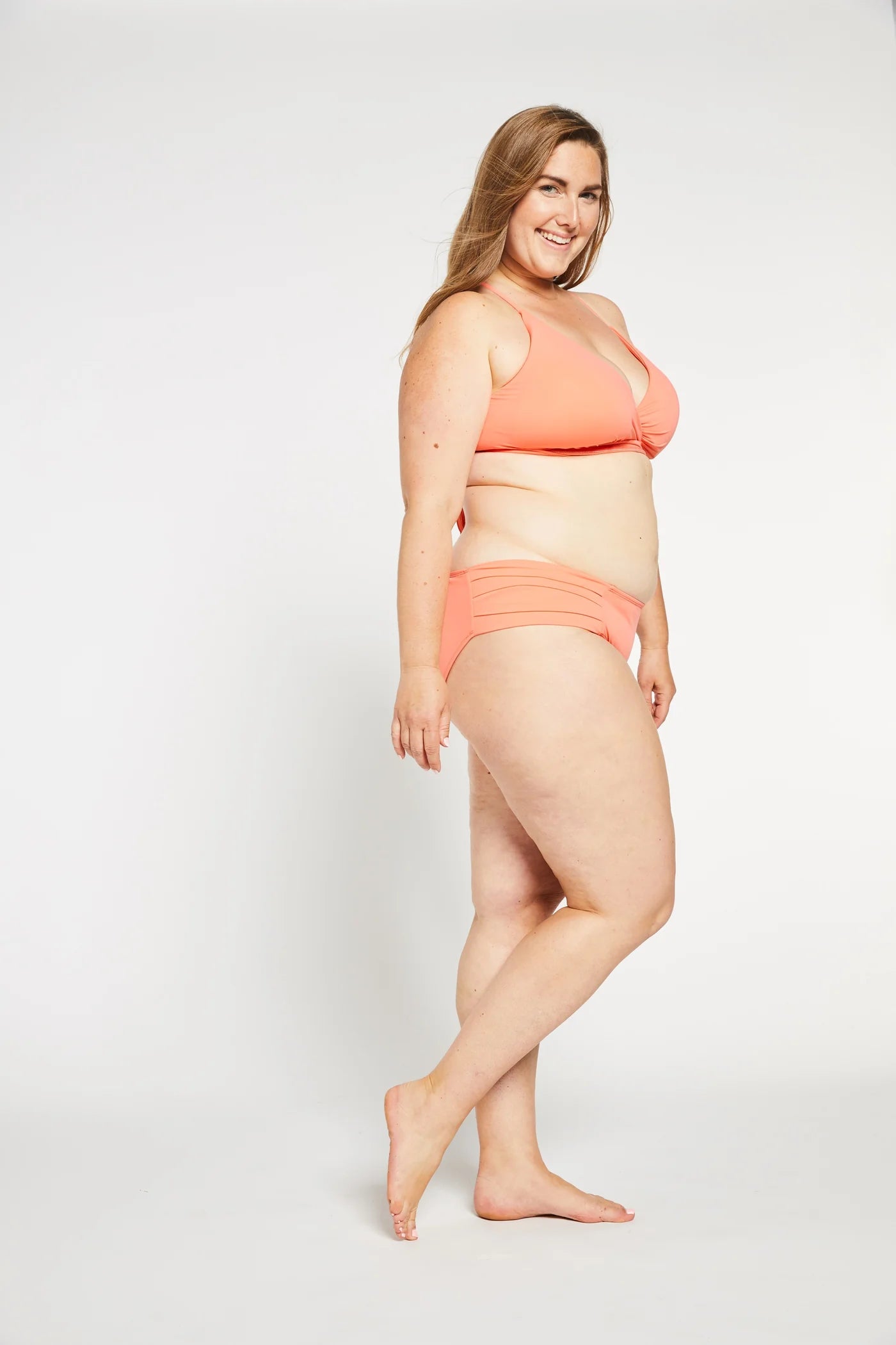 Although this swimsuit is designed for women with a full D Cup & up bust it can work for a less full bust as well if you remove the cups.